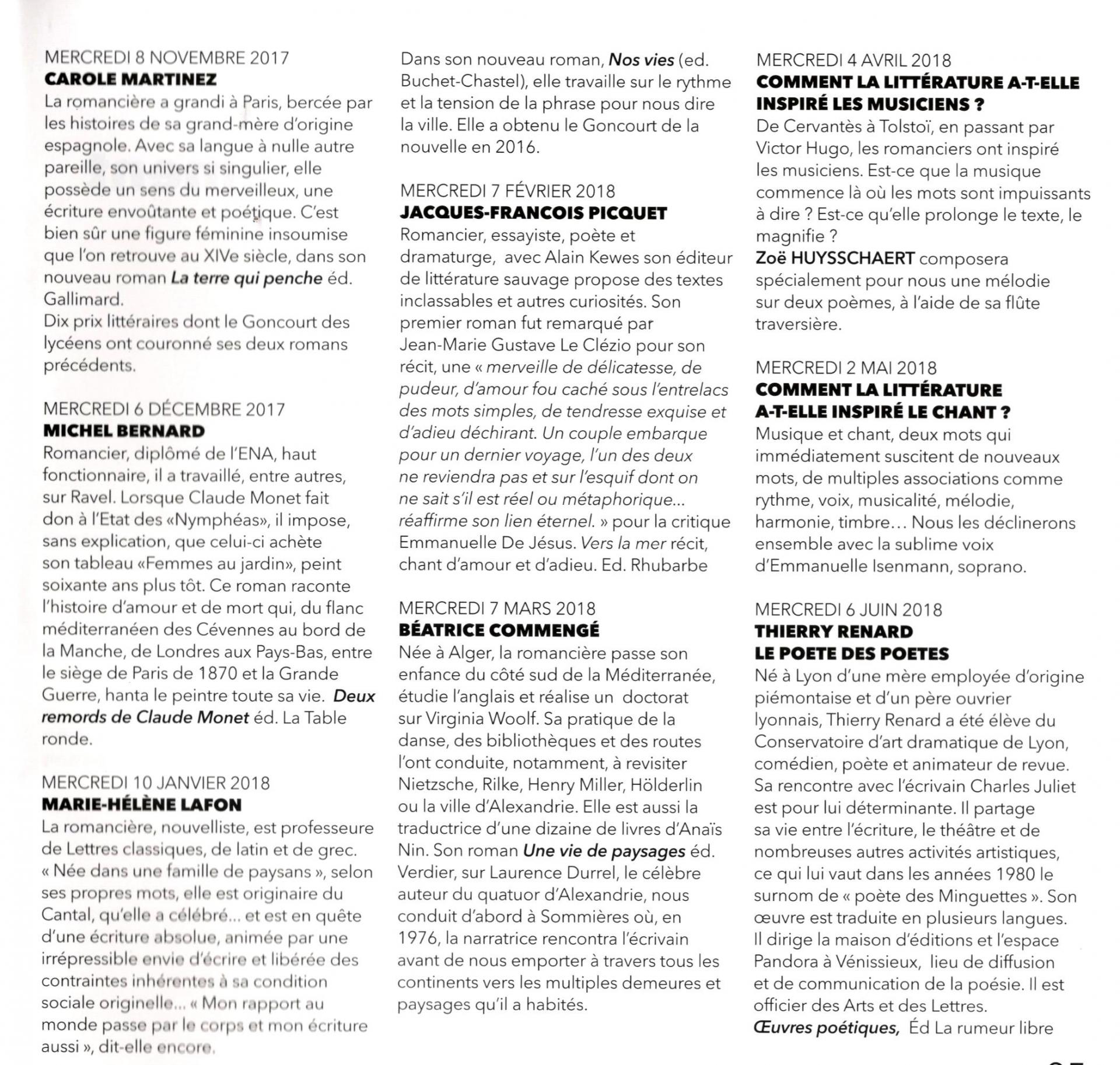 Article rencontre du 10 janvier 2018 au Carré Baudouin avec Marie-Hélène Lafon
